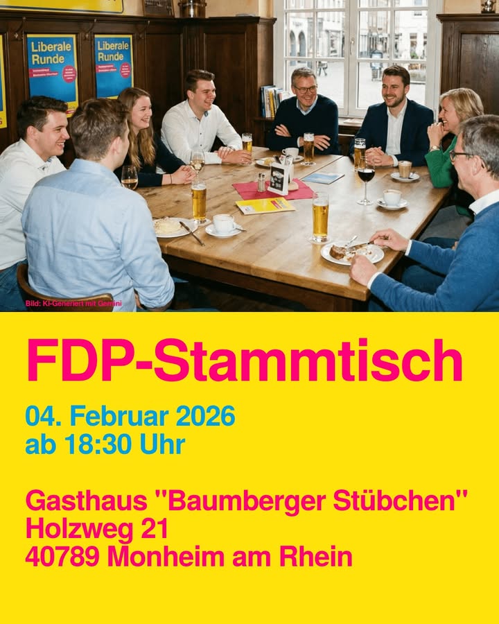 Am Mittwoch noch nichts vor? Kommt spontan zu unserem Stammtisch und diskutiert aktuelle politische Themen. Wir freuen uns auf euren Besuch. #FDPMonheim #Stammtsich #monheimamrhein